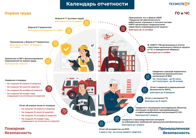 Никаких пропущенных сроков и забытых форм. Теперь каждый специалист - по охране труда, промышленной, пожарной безопасности или ГО и ЧС - видит свою "красную дату" на едином календаре. Никаких таблиц в Excel и пометок на стикерах: система подскажет, куда направить отчет, в какой форме и когда крайний срок.
